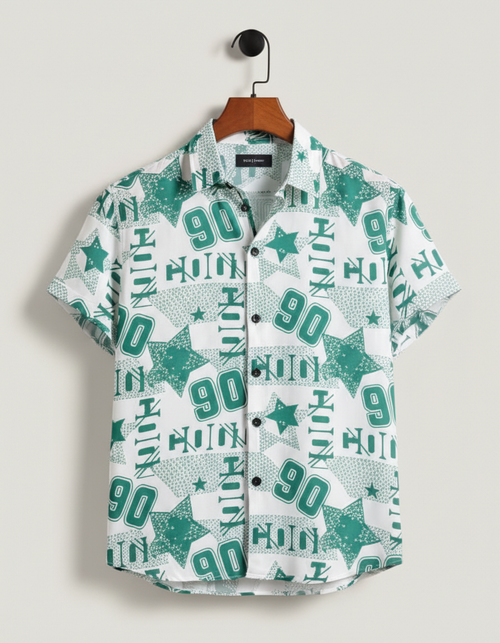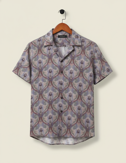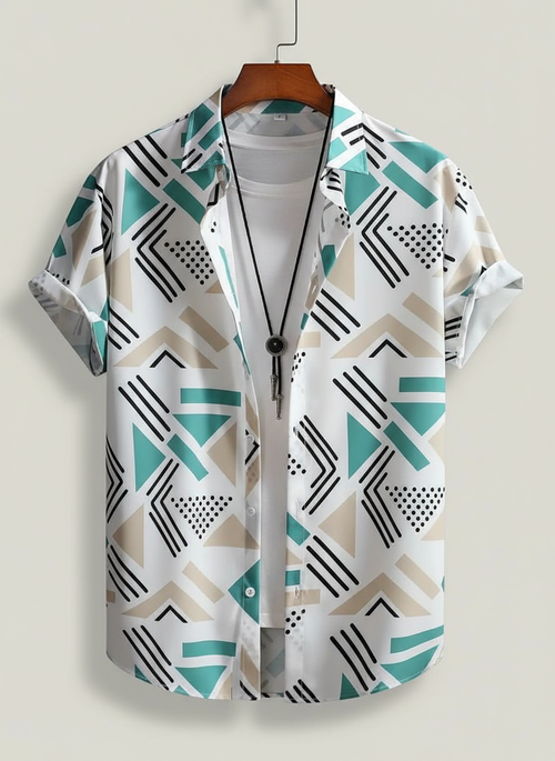 Men’s Classic Fit Spread Collar Geometric Printed Casual Shirt – Stylish Everyday Cotton Button-Down